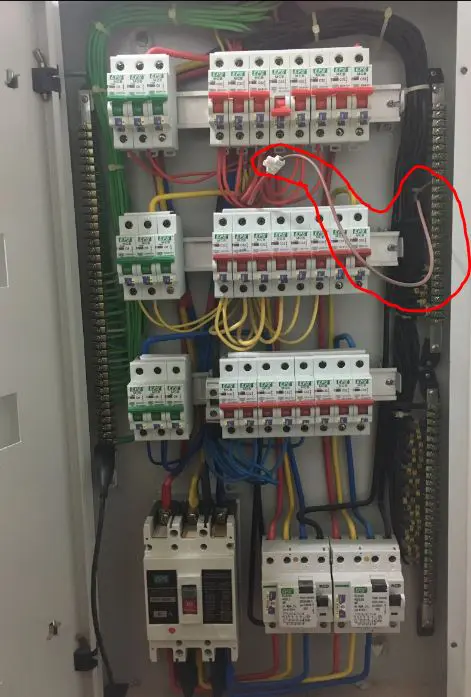 図を見て頂けるとお分かりの通りブレーカーの2次側の配線を取り外して黒のターミナルと接続しているのがお分かりですか?