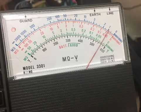 測定方法としてはコンセントプラグの両方に電圧を印加し,他方のワニ口プラグを家電筐体の金属部分に当てます。∞になれば絶縁が取れている証拠ですので問題ありません。(注意;電圧を通常使用している電圧より負荷しない。100Vコンセントで使用しているのであれば125Vまで負荷する。)