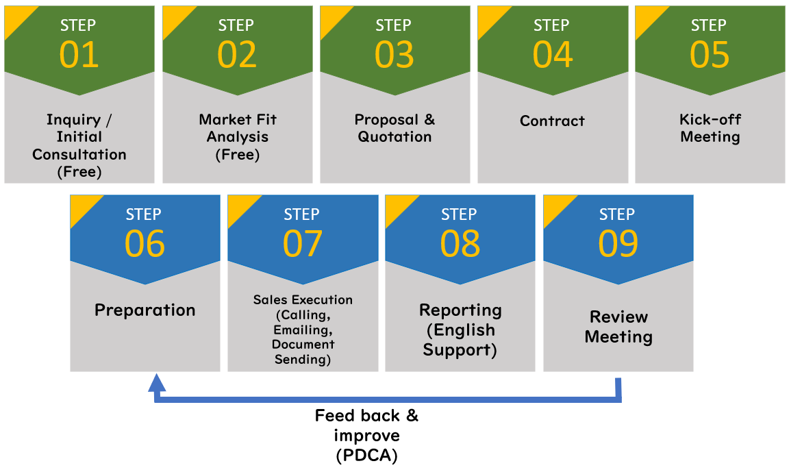 We act as your local sales team—even without a physical presence in Japan—conducting lead generation, appointment setting, and nurturing with local prospects.