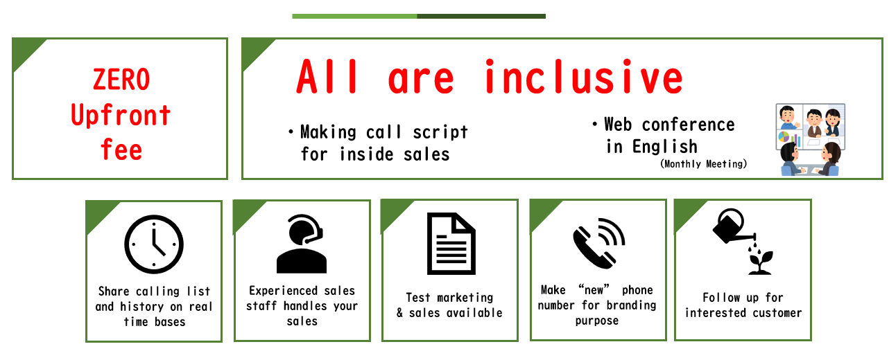 A: No, there is absolutely no initial fee. We encourage you to try with 100 companies to evaluate the results. By contracting for multiple months, data will be accumulated, which allows us to generate appointments more efficiently.