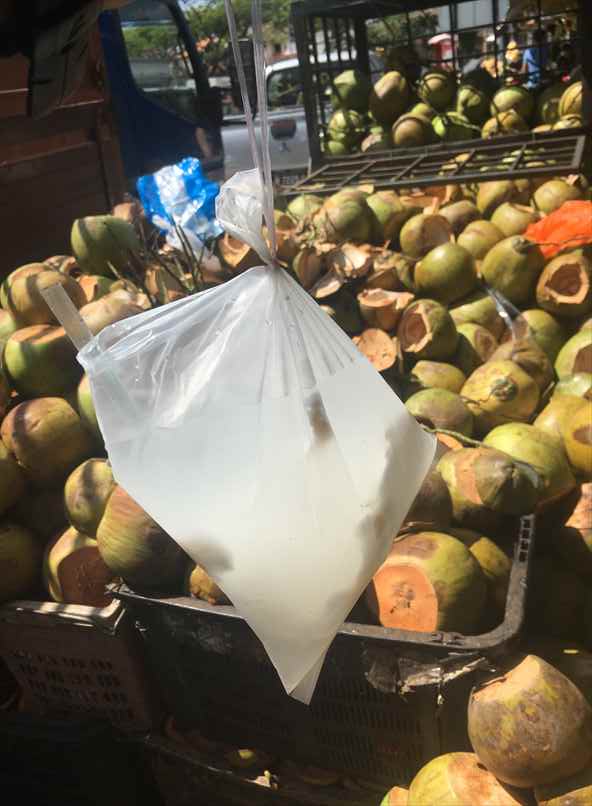レジの近くには飲み物の冷蔵庫があるので、自分で持ってきてしまっても構いません。ココナッツやソフトドリンクなどが冷やされて入っています。