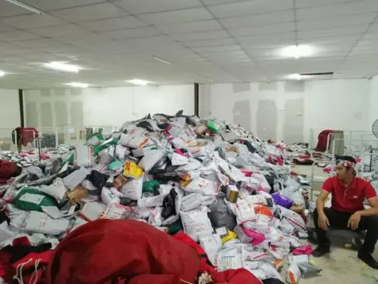 送付した荷物。絶対見つかりません。この山の下でたぶん平たくなっています。