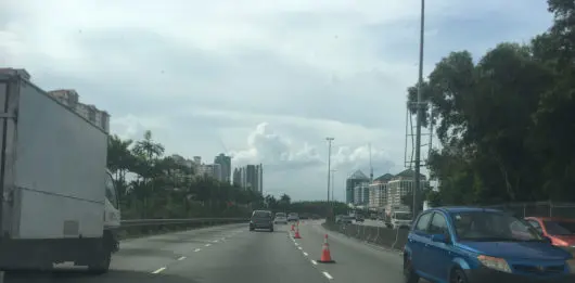 これってスーパー危険ですね。中央を区切っているのはコーンだけ。