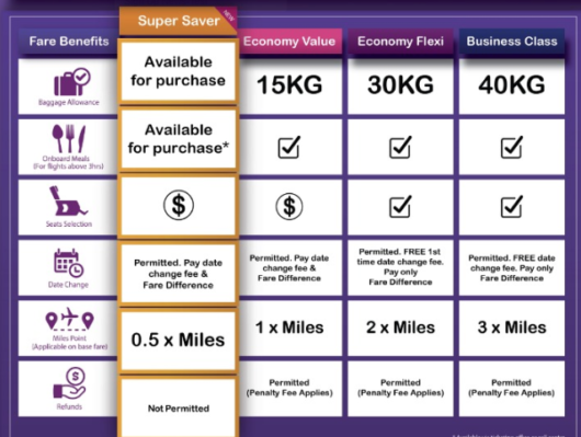 こちらの「Super Saver」というのが前述したAirAsiaと競合するために出来たプランです。